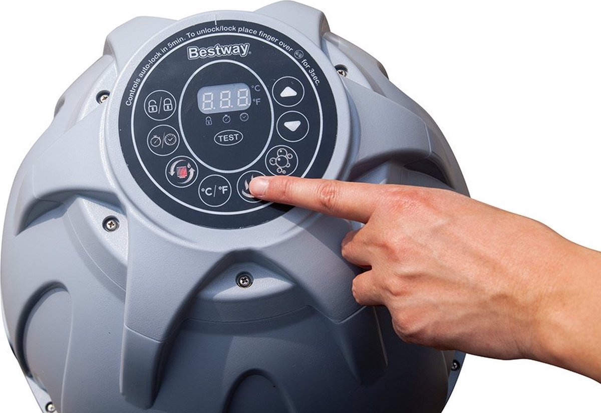 De nieuwe pomp beschikt over een modern touchscreen controlepaneel met flip-up ontwerp, inclusief een handig plateau voor bekers en kleine versnaperingen. Dankzij het Power Saving System wordt de energie automatisch geregeld met een start/stop timer, waardoor je comfort en energie-efficiëntie perfect in balans zijn. Het Freeze Shield-systeem beschermt je spa tegen bevriezing onder 4°C, zodat je hem het hele jaar door kunt gebruiken zonder zorgen.